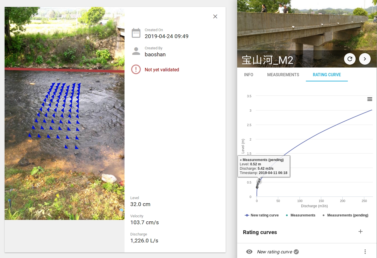 After the water level measurement, the discharge can be estimated based on the defined rating curve.