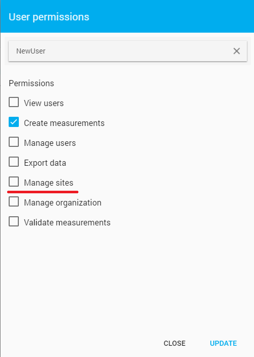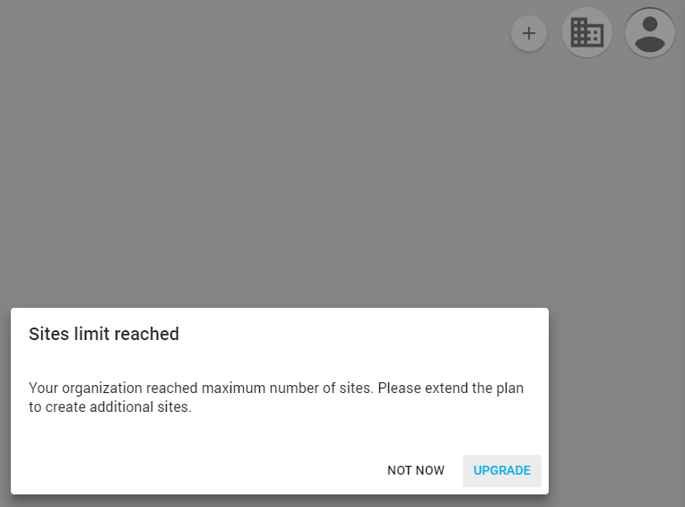 This could be mainly due to two different reasons. First, you may not are granted with the permission to create a site. For every administration, there is an administrator controlling the permissions of the users (e.g. view users, create measurements, manage sites etc.). In order to get these permissions, contact the administrator (email available under the organization tab). Alternatively, you also may want to create your own organization. Secondly, it can also be that you reached the maximal amount of sites available for the plan you have. In this case, you will need to update to another plan.